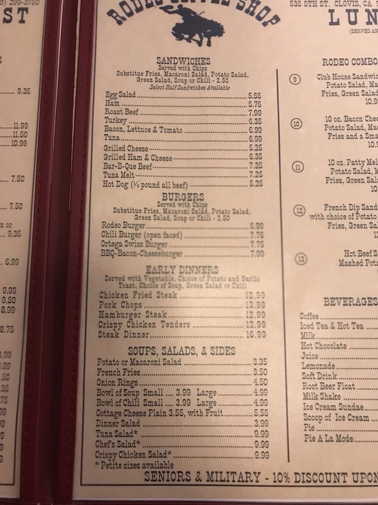 Don't miss out on the irresistible desserts, featuring homemade pies and decadent sundaes that provide the perfect sweet finish to your meal. Customers rave about the large portions and consistently excellent service, making Rodeo Coffee Shop a must-visit for breakfast lovers in Clovis.